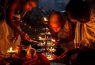 As the momentum picks up, the lamps are lit, fragrant smoke from incense sticks rises with the chants of mantras and engulfs the surroundings. With bright colorful lights and popping flash bulbs from cameras, the smoke forms a cloak of mystery as soul-stirring songs transform you to another time and dimension.